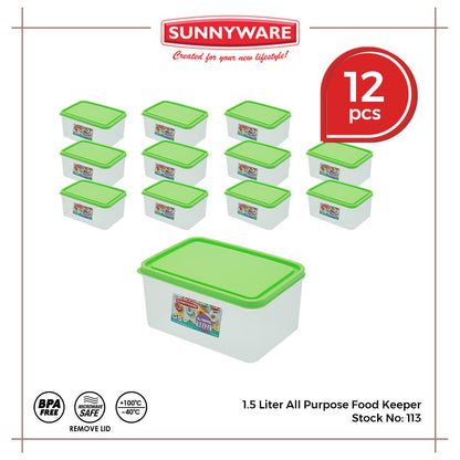 12pcs 1.5 liter All Purpose Food Keeper [Sunnyware 113] | Plasticware | Food Storage | BPA Free