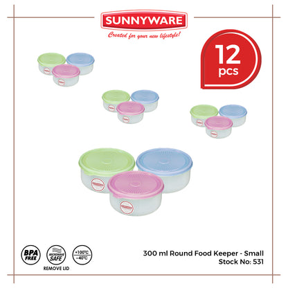 12pcs 300 ml Round Food Keeper - Small [Sunnyware 531] | Plasticware | Kitchenware | Food Storage