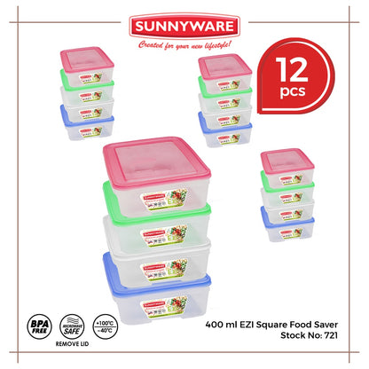12pcs 400 ml EZI Food Saver Keeper Storage Container [Sunnyware 721] Microwavable House Plastic Ware