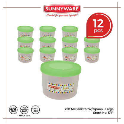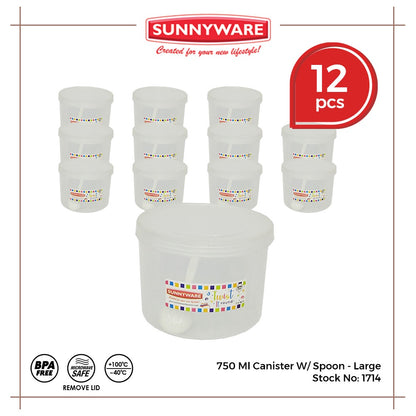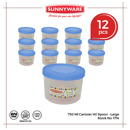 12pcs 750 ml Canister w/ Spoon - Large [Sunnyware 1714] | Plasticware | Food Storage | Kitchenware