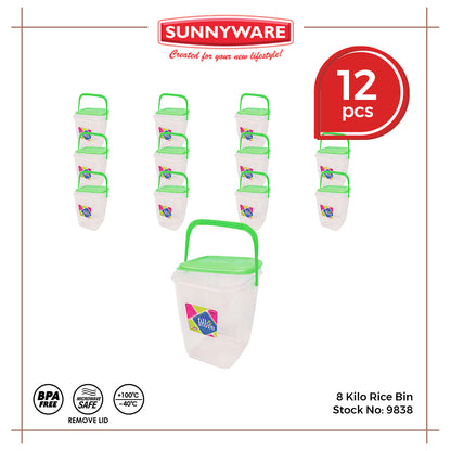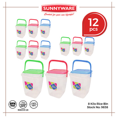12pcs 8 Kilo Rice Bin [Sunnyware 9838] | Plasticware | Storage | Organizer | Rice Storage | with Lid