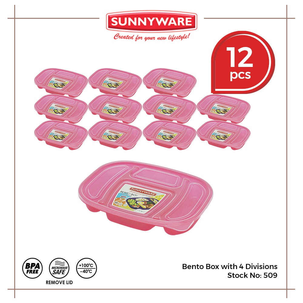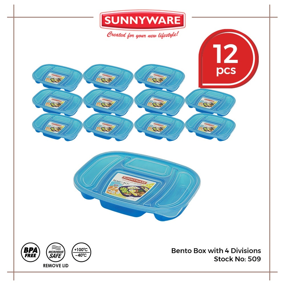 12pcs Bento Box with 4 Divisions [Sunnyware 509] | Plasticware | Lunch Box | Food Keeper | BPA Free