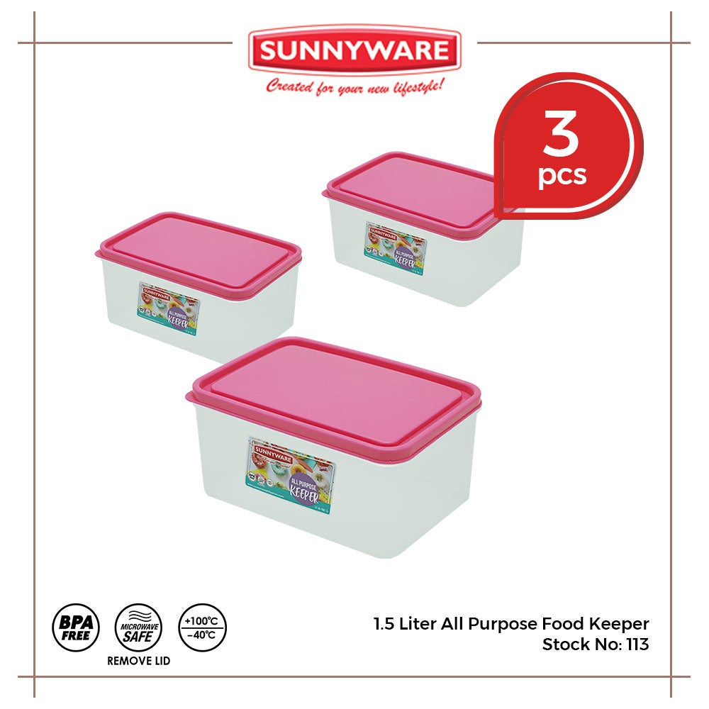 3pcs 1.5 liter All Purpose Food Keeper [Sunnyware 113]| Plasticware | Food Storage | BPA Free