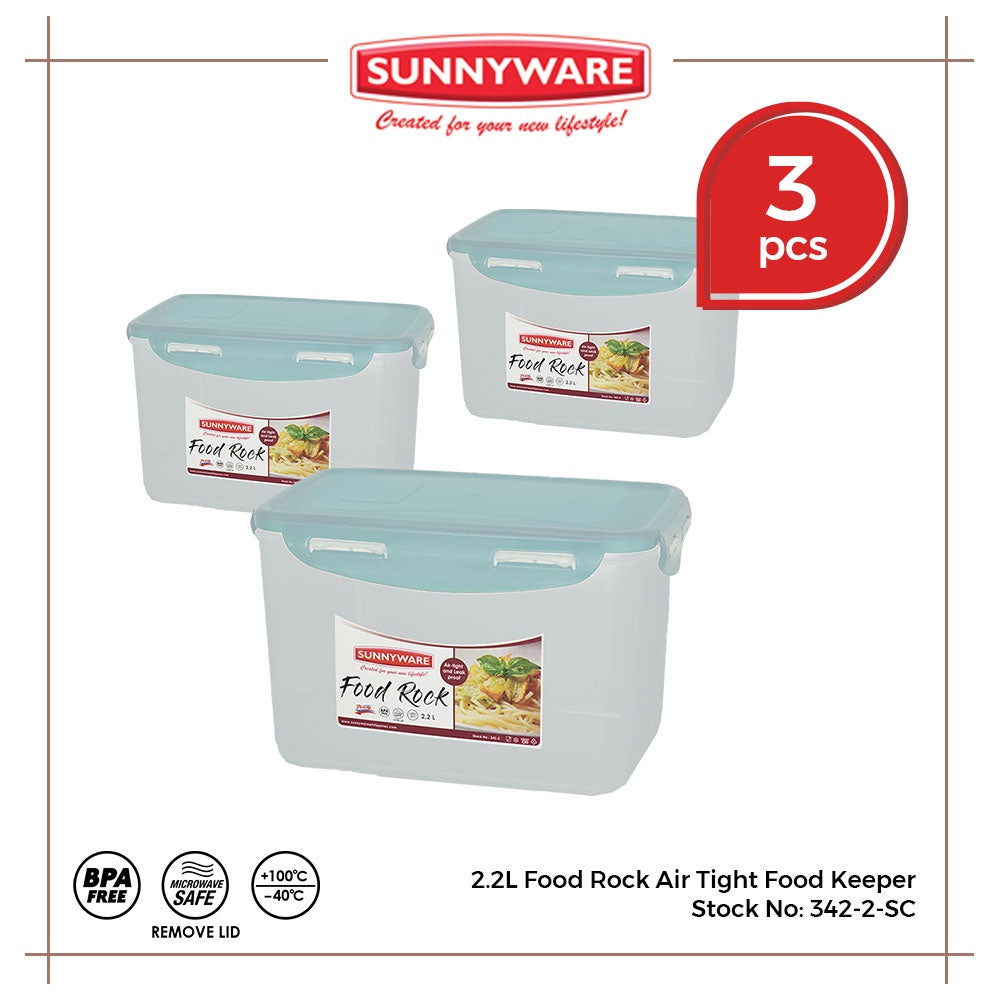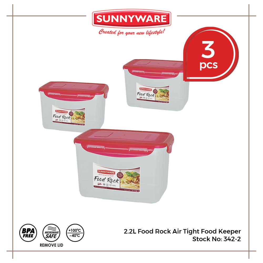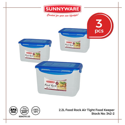 3pcs 2.2 Liter Food Rock Air Tight Food Keeper [Sunnyware 342-2] |Plasticware | Leak Proof | Storage