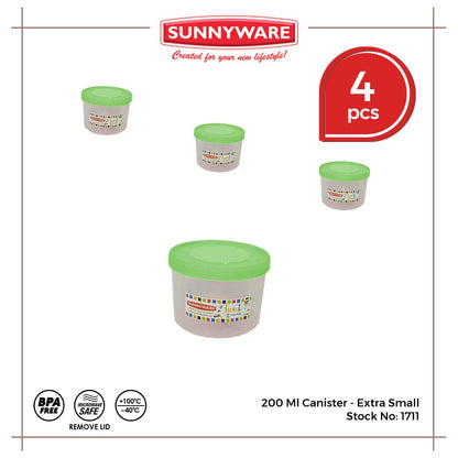 4pcs 200 ml Canister - Extra Small [Sunnyware 1711] | Plasticware | Food Storage | Kitchenware