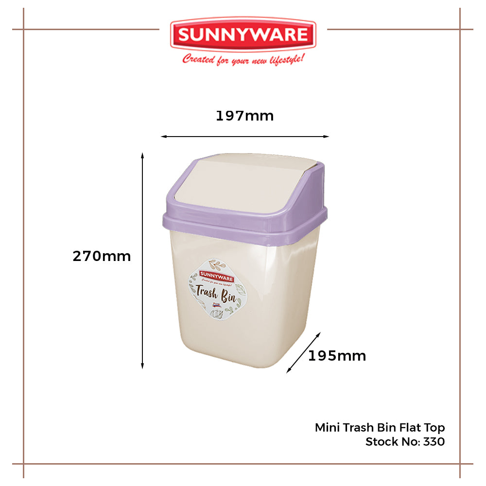 Sunnyware 330 Mini Trash Bin 7.5"x7.5"x10.5" flat cover
