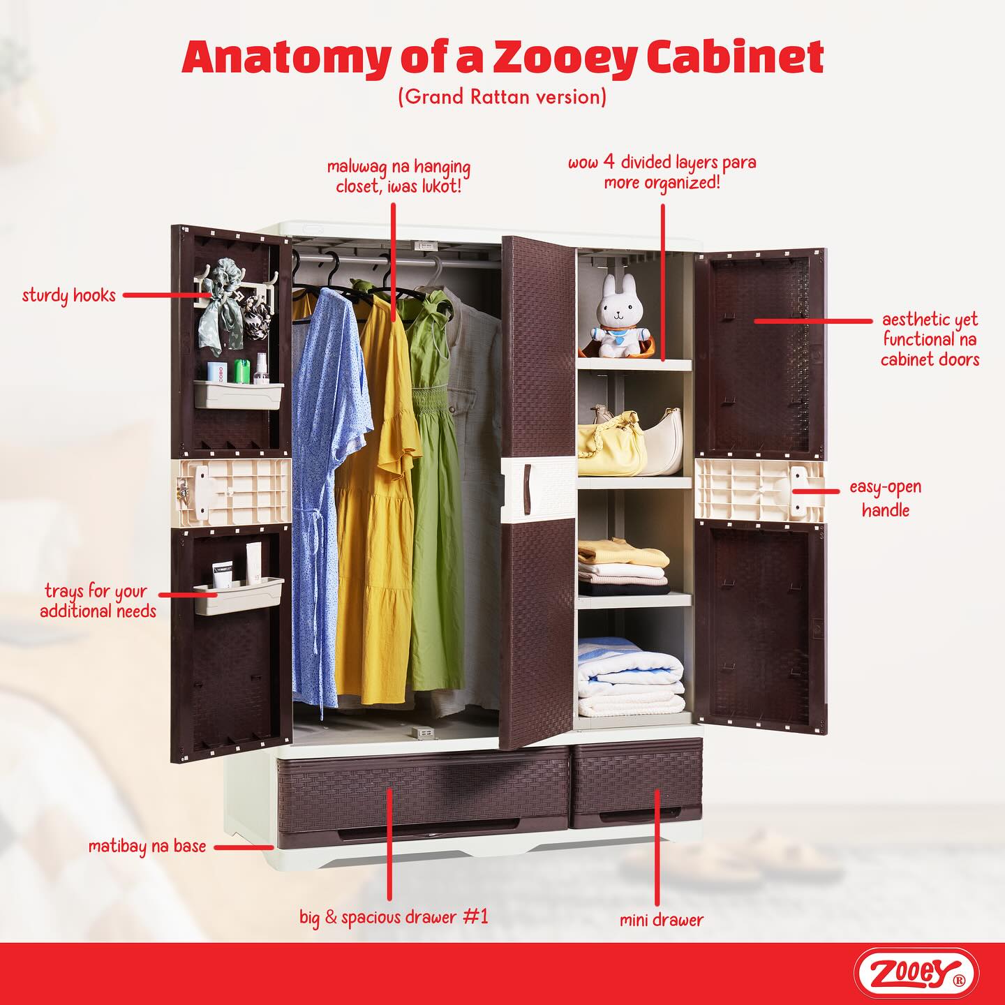 ZOOEY GRAND RATTAN CABINET /Wardrobe/Clothes Organizer Stock No.GRR-2009 Rattan