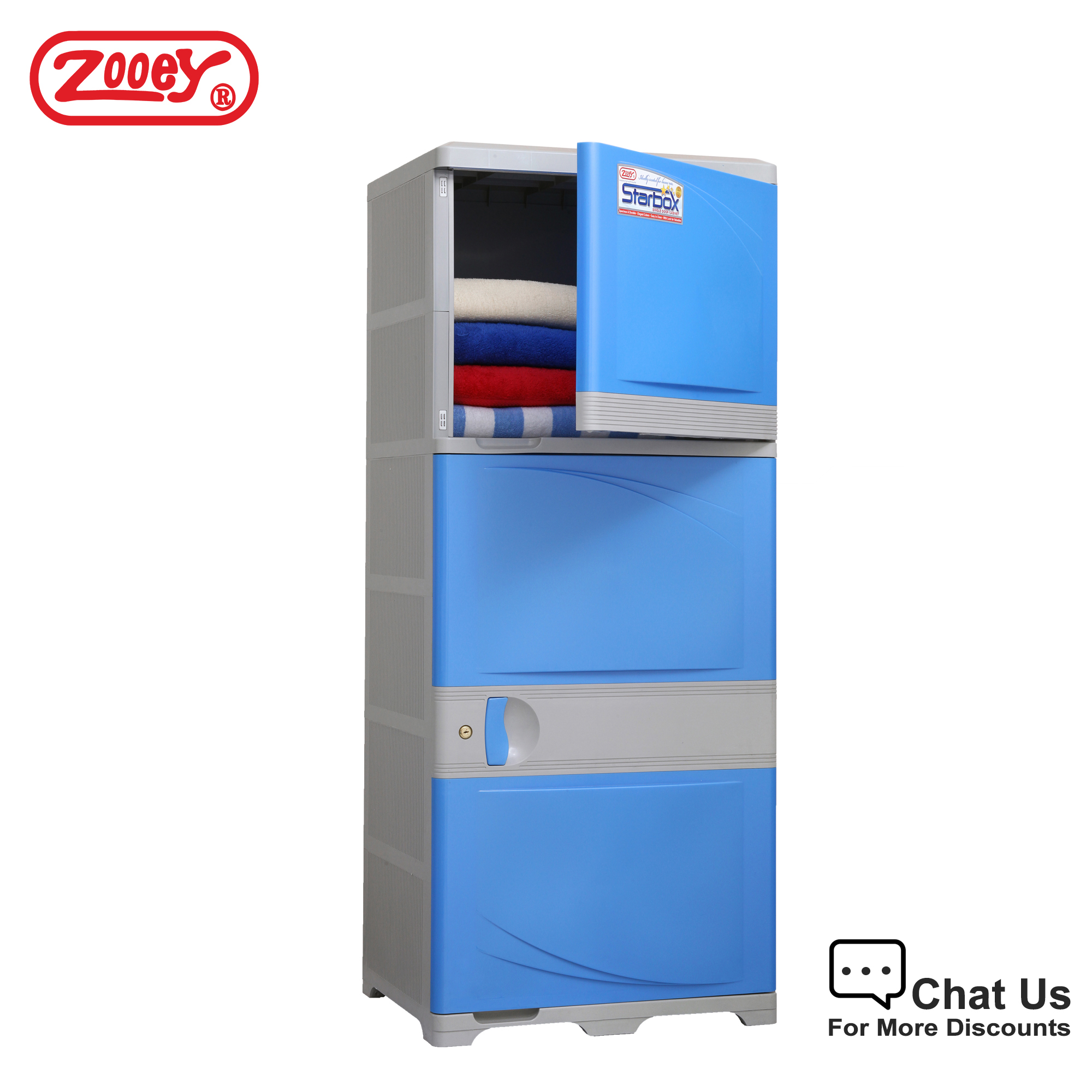 It’s a triple-door cabinet that saves space while providing enough room for storage. They come in different colors for you and your family!
